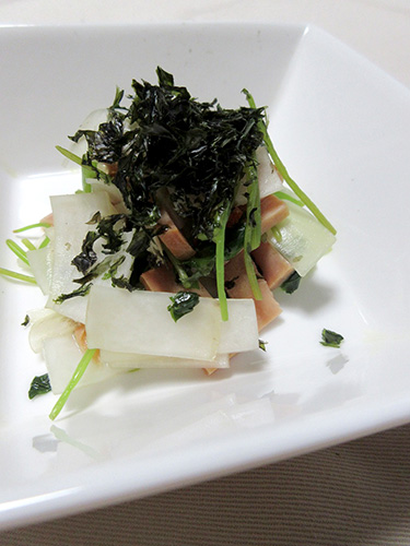 10月の献立『暑くて、長〜い夏がやっと終わりそうです。待ち遠しかったですね! 秋になると食材が豊富になり、美味しくなります。 美味しくなる大根を余すところなく使いました。 他の食材と共にタップリ頂きましょう!!!』 |
